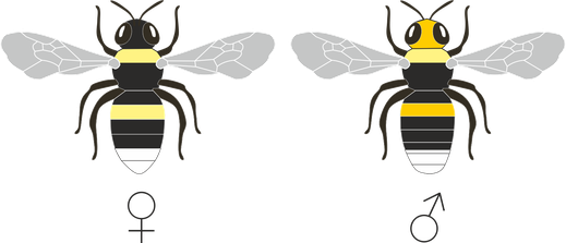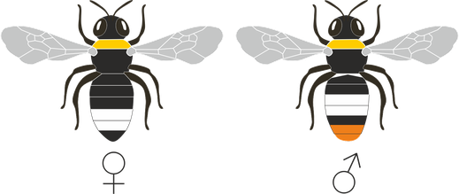 Die drei Kasten (♕, ♀, ♂) dieser Kreatur unterscheiden sich in ihrer Körperfärbung voneinander. Die letzten Hinterleibsabschnitte sind in der Regel bei allen orangerot. Zusätzlich weisen die ♕ und die ♂ zwei gelbe Querbinden auf. Eine befindet sich hinter dem Kopf und bildet einen Kragen aus, die zweite zieht sich über die ersten Hinterleibsabschnitte. Bei den ♀ dagegen ist die gelbe Färbung des Hinterleibsabschnittes reduziert oder fehlt sogar vollständig. Auch die orangerote Färbung des Hinterteils kann schwächer ausfallen als bei ♕ und ♂. Je nach Blickwinkeln kann sie sogar zu fehlen scheinen. Bei den ♂ dominiert die Gelbfärbung über die schwarze Färbung, da bei ihnen die Querbinden deutlich umfangreicher, struppiger und farbintensiver sind. Oft sind sie von einem intensiven zitronengelb. Auch die Färbung der Gesichtsbehaarung ist differiert. Während die Gesichter der ♕ und ♀ schwarz sind, ist die Gesichtsbehaarung der ♂ leuchtend gelb.
