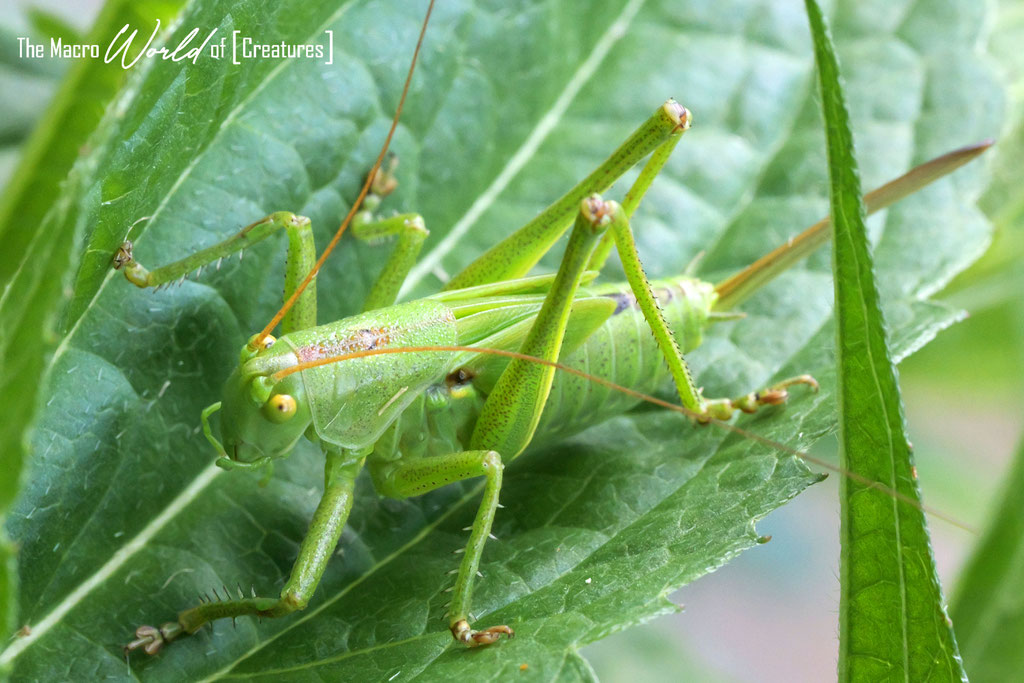 flugunfähig. Auch der charakterische, sensenförmige Legestachel, der sich beim ♀︎ erst später ausbildet, ist bei den