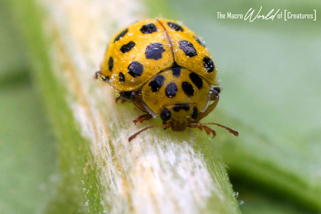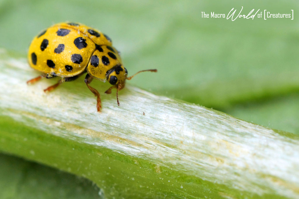 Diese Kreaturen verfügen über eine ungemeine Formenvielfalt. Es gibt weit über 100 unterschiedliche Farb- bzw. Mustervariationen. Die Abweichungen sind so deutlich, dass man sie für eigenständige Arten halten könnte. Die Käfer sind hell- bis kräftig gelb und haben je sieben schwarze, nahezu rechteckige Flecken auf dem Rücken. Diese können sich aber auch so weit ausdehnen und zusammenwachsen, dass das Gelb fast komplett verschwindet bzw. das Tier aussieht, als hätte es gelbe Punkte.