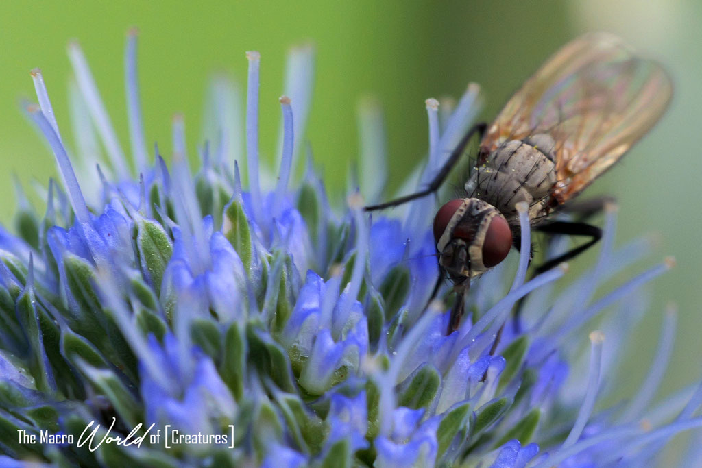 Diese Kreatur ist ein Kleptoparasit verschiedener Sandbienen. Die solitären Bienen legen ihre Nester gewöhnlich in Bodenhöhlen an und bevorraten diese mit Pollen und Nektar. Die weiblichen Fliegen folgen den weiblichen Sandbienen zu deren Bruthöhlen. In diese legen sie ihre Eier ab. Die geschlüpften Larven entwickeln sich in den Bienennestern. Sie ernähren sich von den Vorräten ihrer Wirte, vermutlich auch von deren Brut.