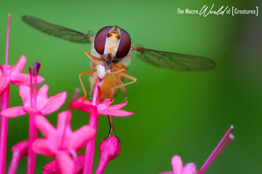 Die ♀ dieser Kreatur fressen viele Pollen, da sie Aminosäuren und Proteine liefern, die sie für die Eierproduktion benötigen. Die ♂ fressen Pollen vor allem zu Beginn ihres Erwachsenenlebens, weil sie die Samenproduktion anregen. Später wechseln sie vollständig zu Nektar, der energiereichen Zucker zur Deckung des erhöhten Energiebedarfs beim Schweben enthält.